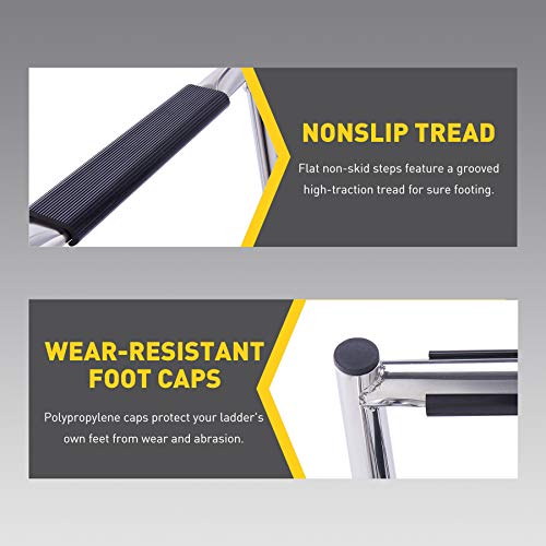 - HEAVY-DUTY CONSTRUCTION: Made of premium 304 stainless steel, CO-Z’s 3-step folding telescopic ladder has a 330 lb. weight capacity and incredible corrosion-free performance for long service; its attached platform is made of marine-grade fiberglass for high resistance to saltwater and extreme temperatures